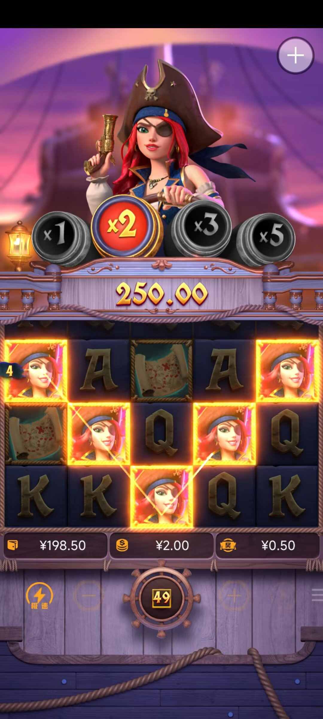 88第一把赏金大对决就进免费游戏,1.2一拉,爆了60,后面打女王来了个五连枪爆了一百多,爆完两百多流水不够又继续打,打到140流水够了提了100
