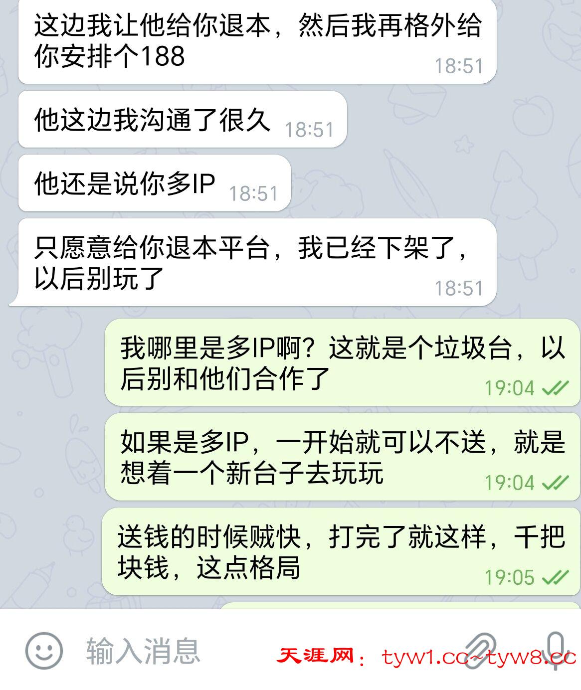 海王垃圾台,卡我1200,说我多IP,给我退本一百了,,然后沈复喊我找阿飞也给我了个188红包,感谢天涯。