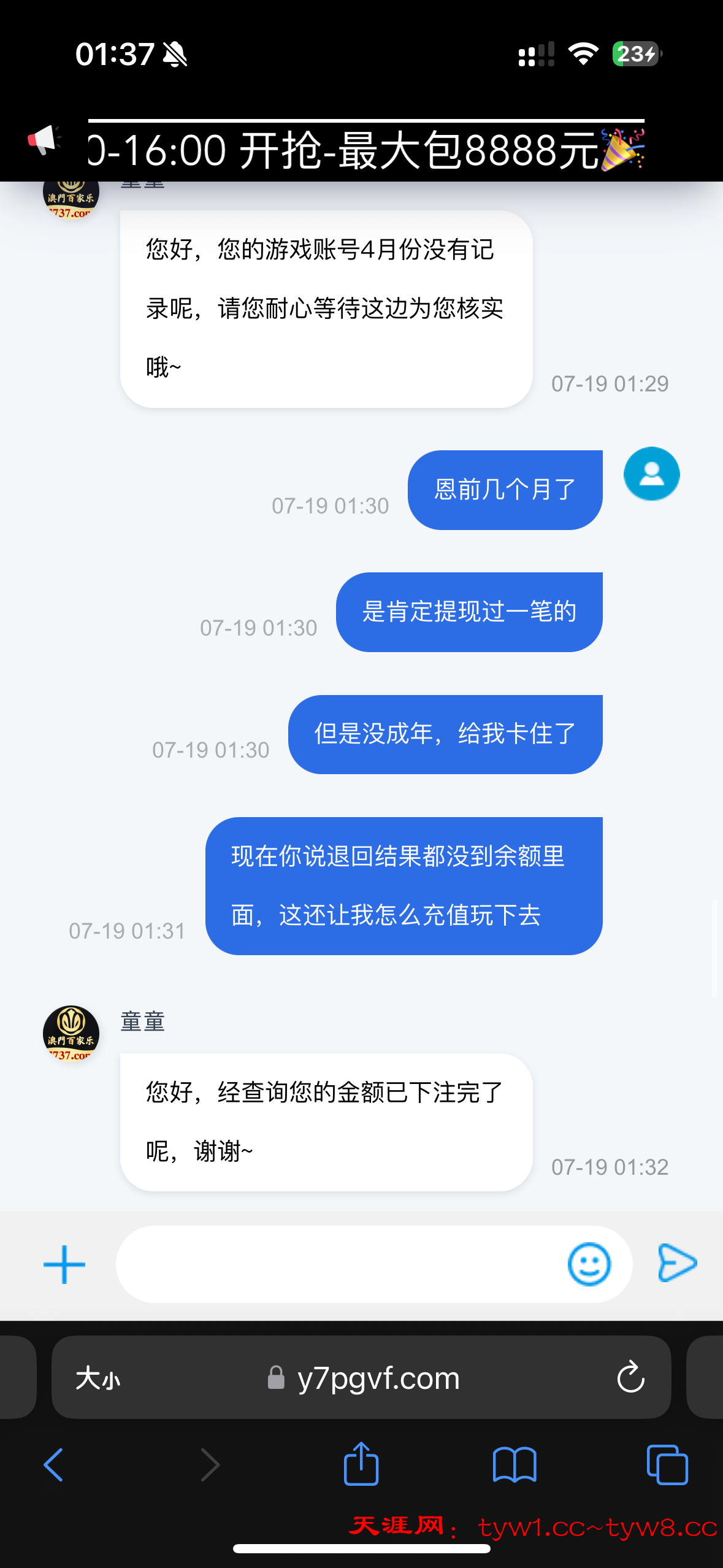 7737.com 澳门百家乐 退回不到账,说我投注完了
