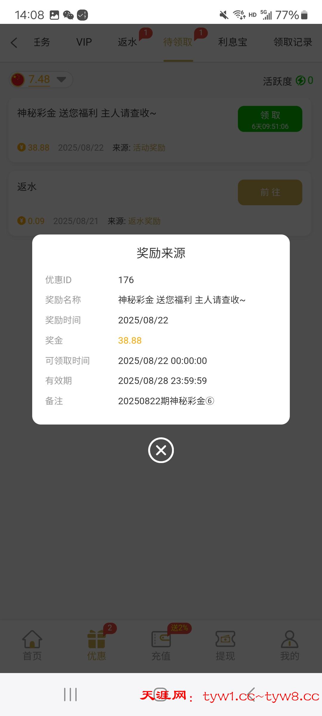 上号就有自助领取。十块二十的充过。