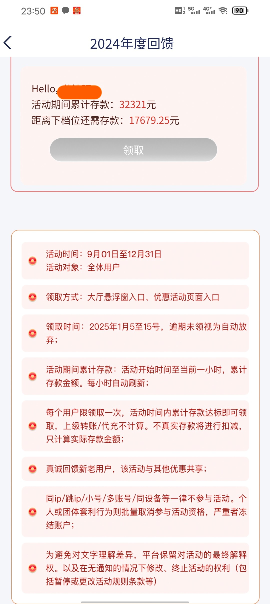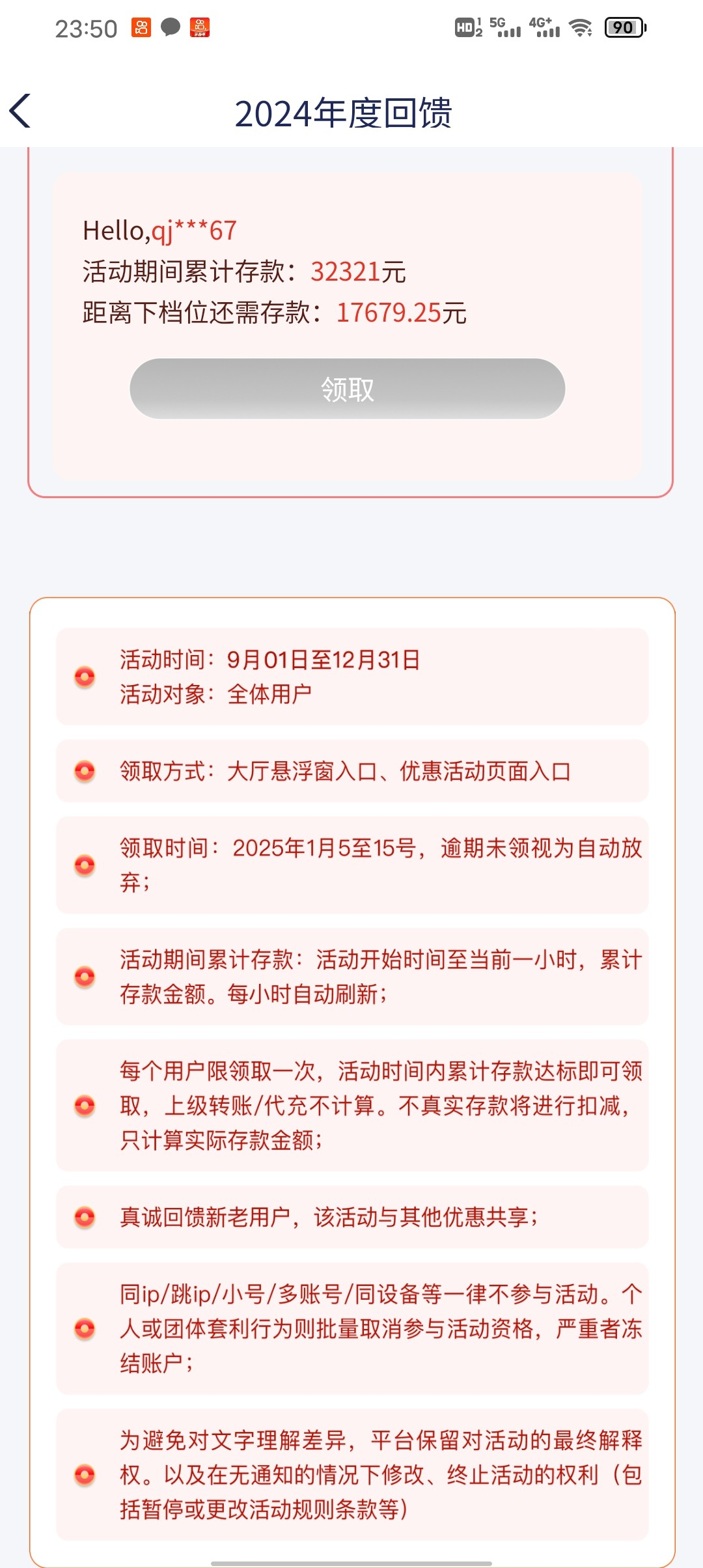 年度回馈充值过的,达标了的可以上号看看