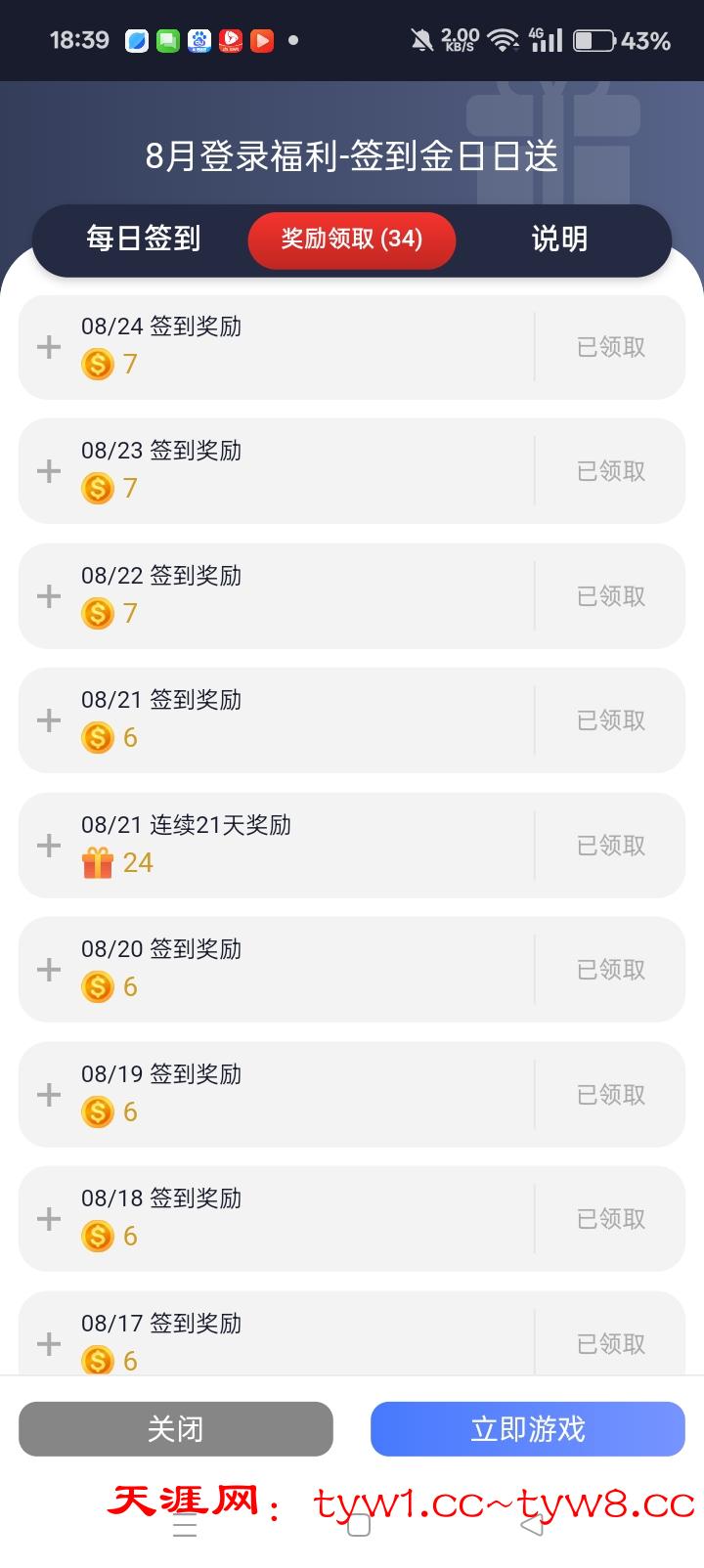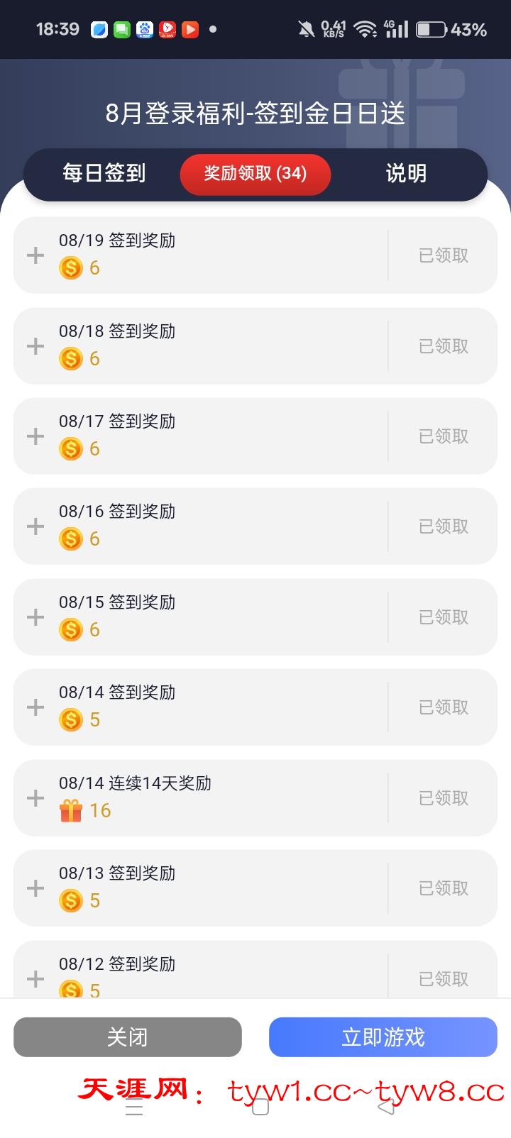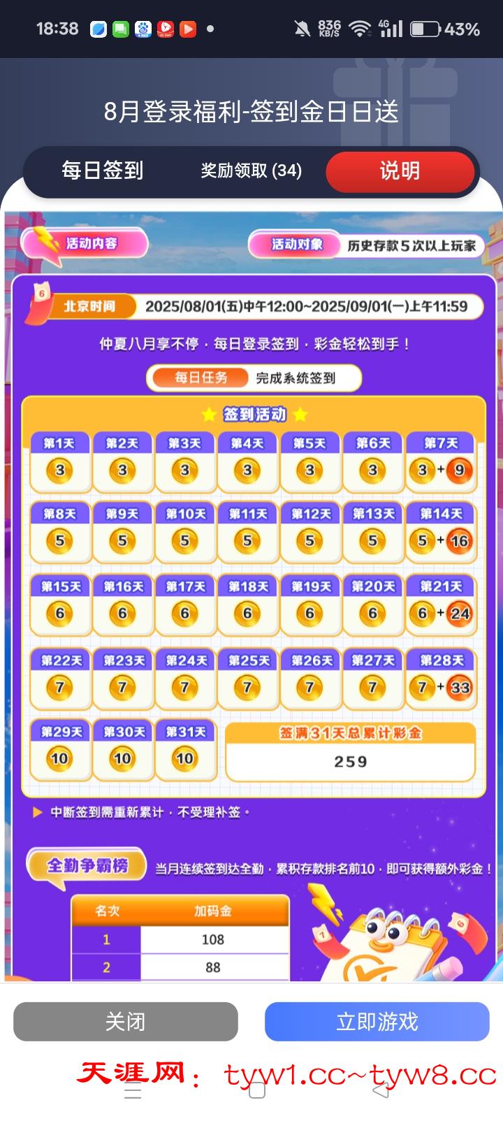 每天免费签到 签到前存款十几二十块。可以签到13天 在第14天 继续存款又可以签到 最低50出款