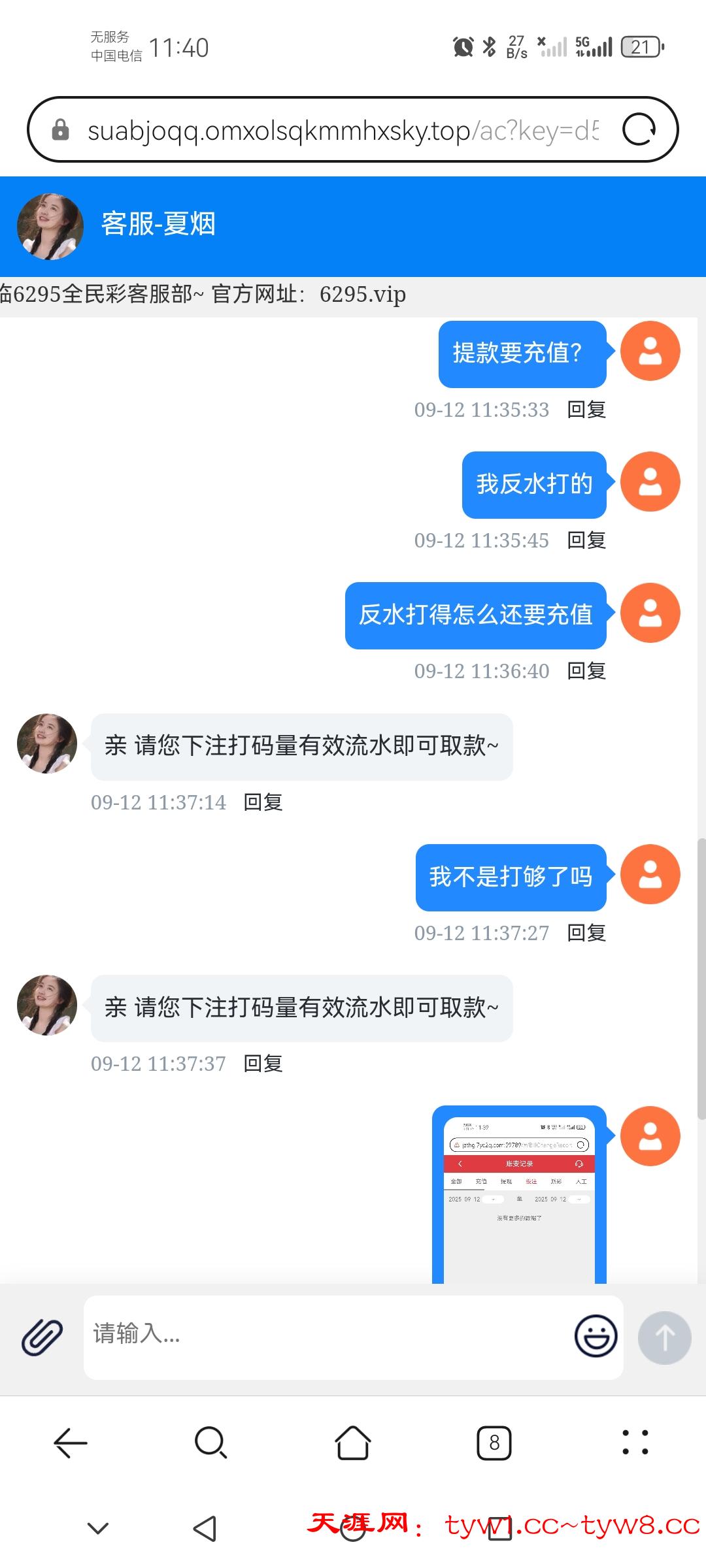 今天没事登上去,看见账号有反水一块,无聊进麻1转一次就进胡了,船长进两次没炸什么分到90。最后转到剩五十进真人梭哈一把提款失败,最后客服说我违规投注,需要充值一杯水才能提款,真是离了大谱