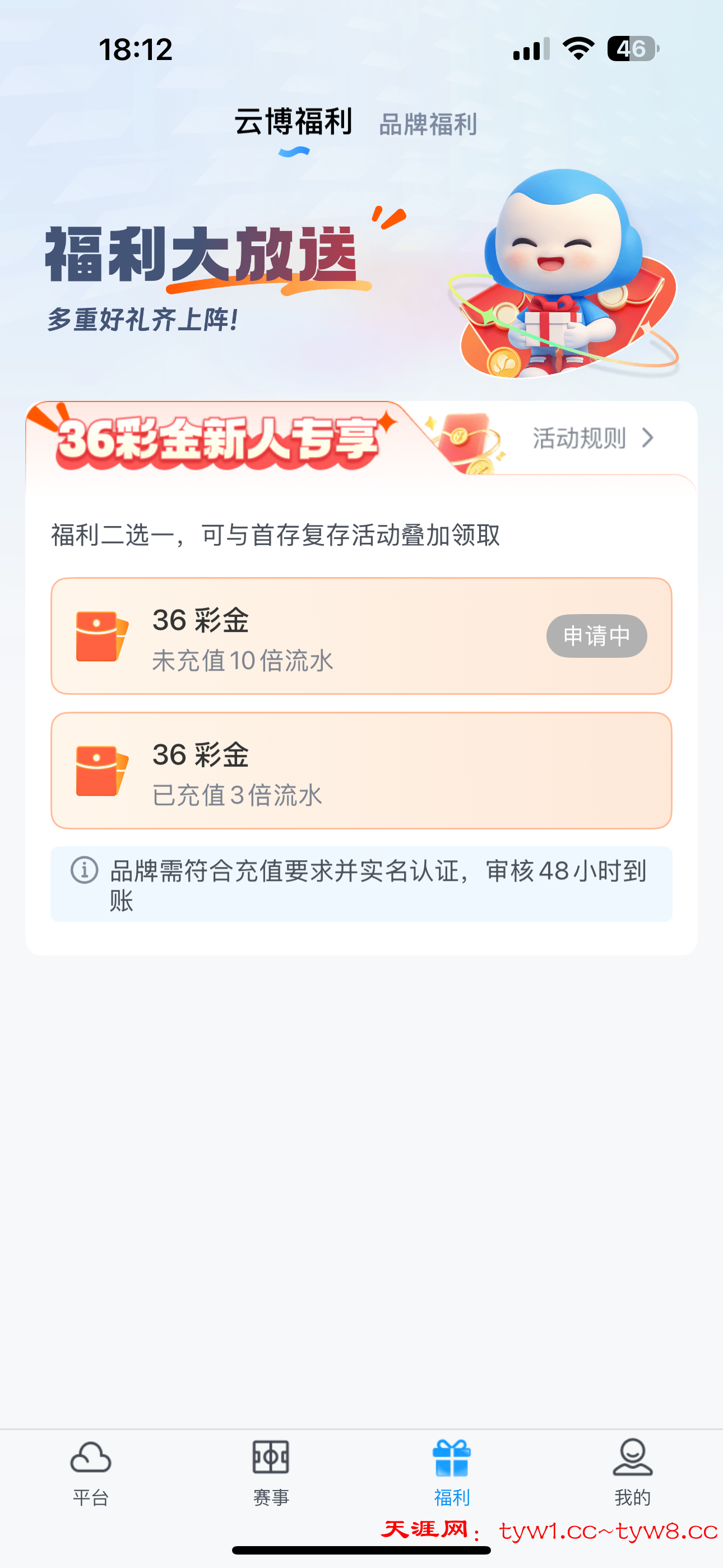 https://yb2886.com/ 送的36彩金是要48小时内到账的,没弄过博系的老哥可以弄一下,可以先注册领取新人16彩金,然后等36彩金到就行了,48小时