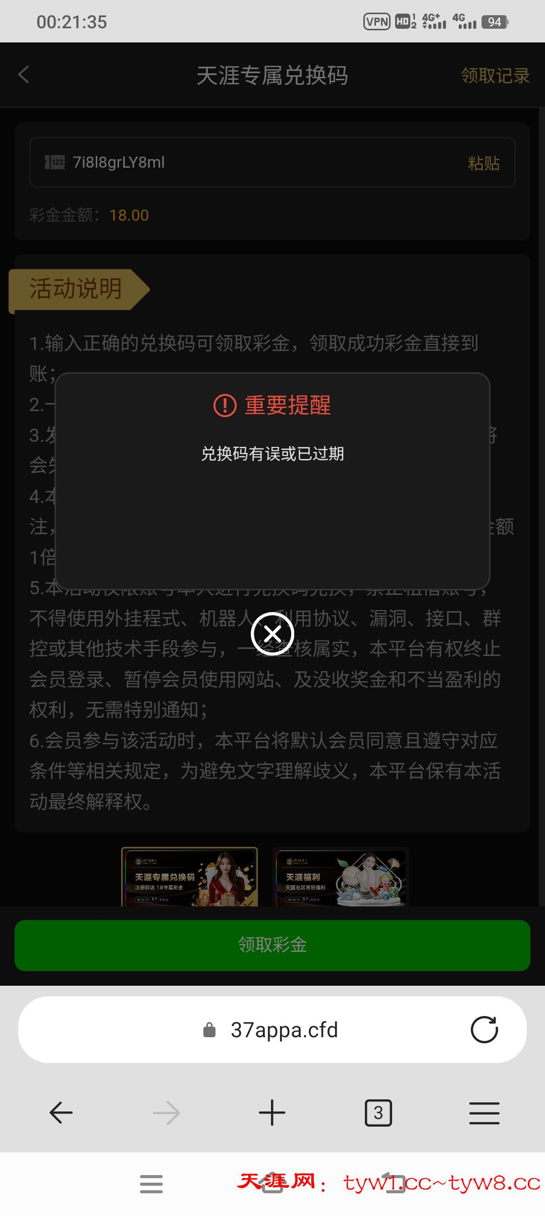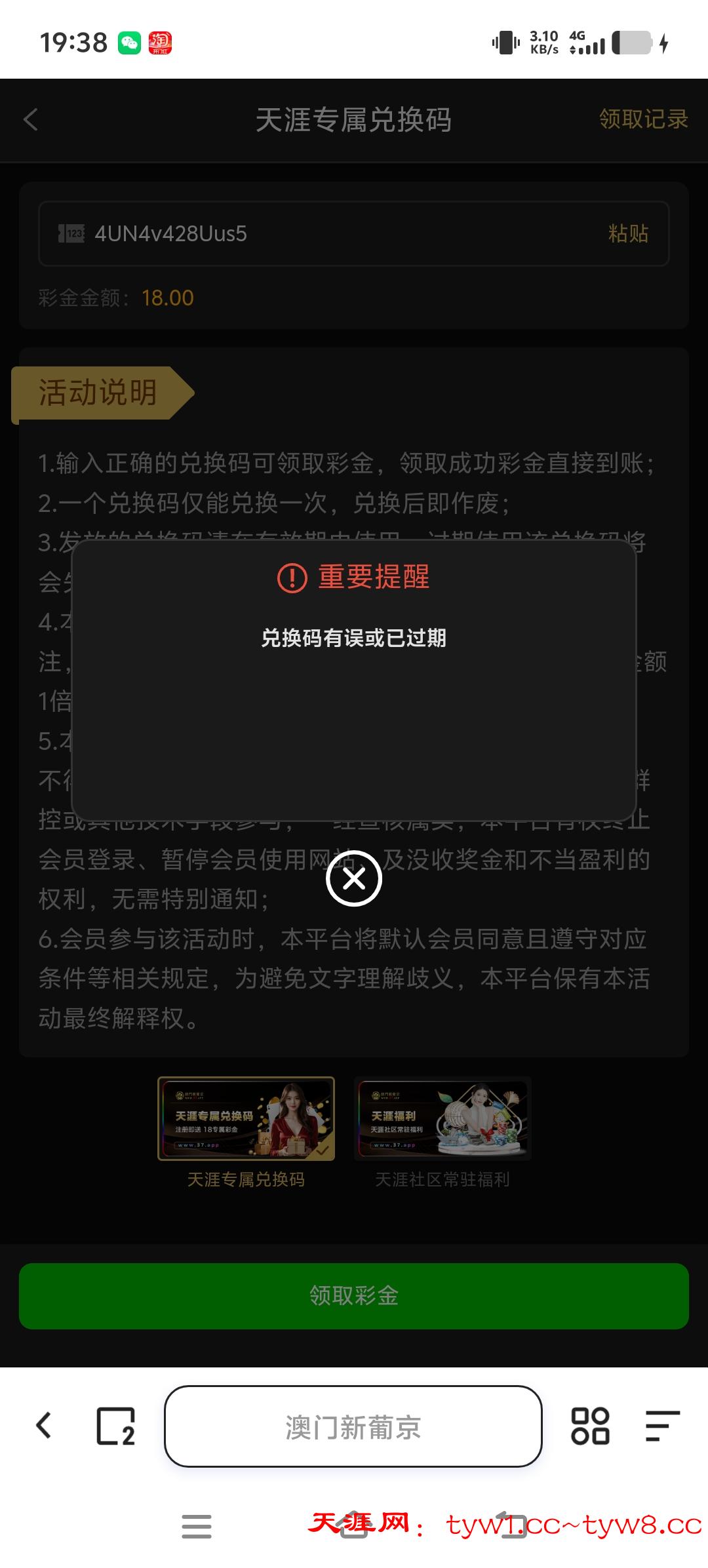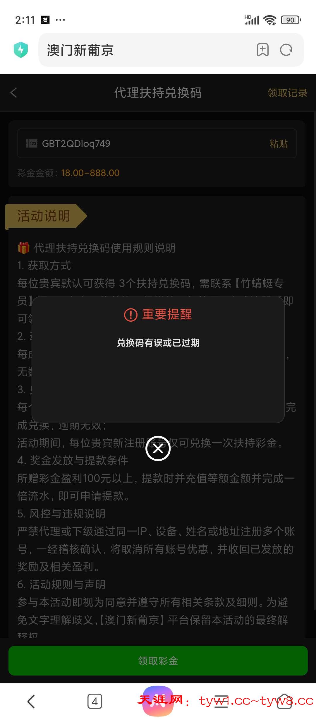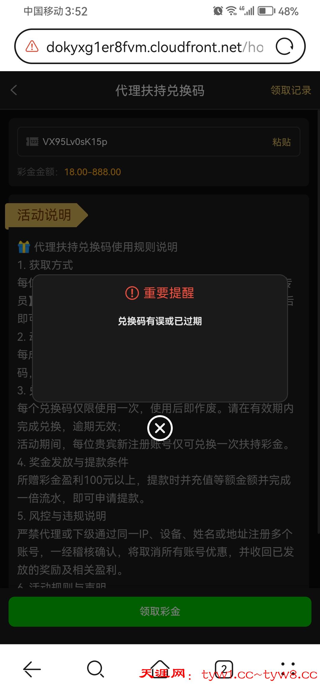 兑换码有误