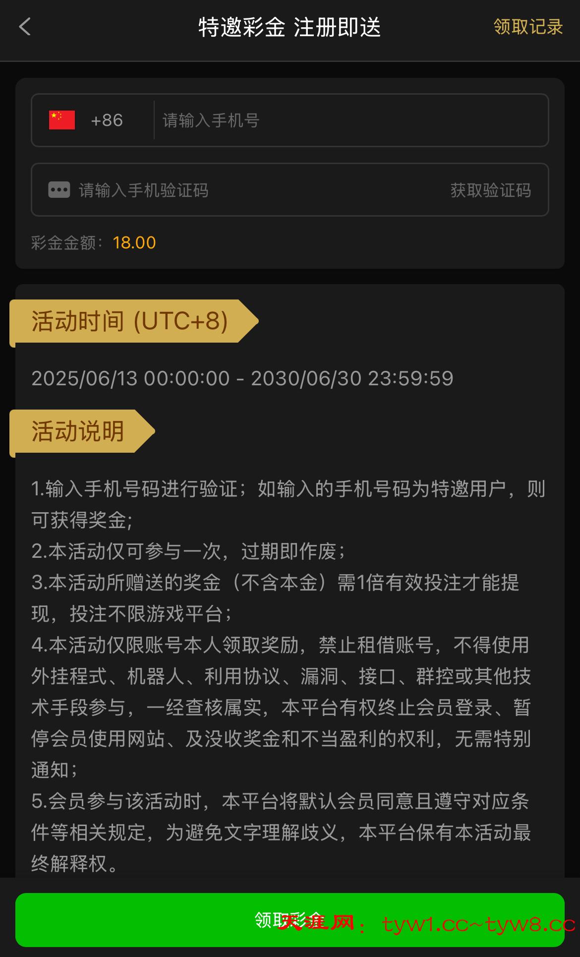 注册用常用手机号去碰瓷特邀