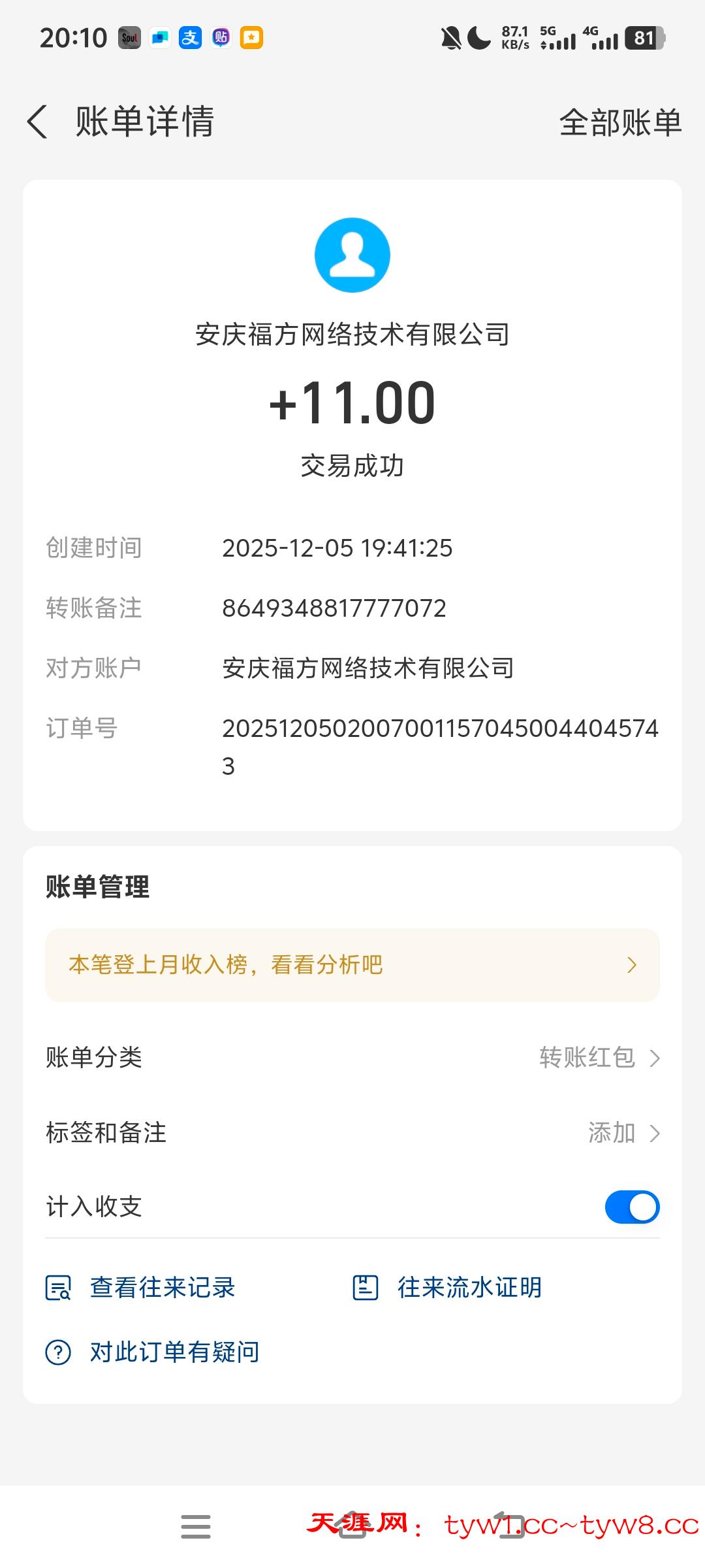 到账12感谢天涯