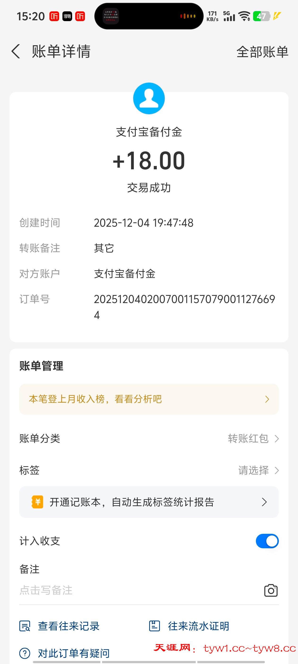 到账15感谢天涯