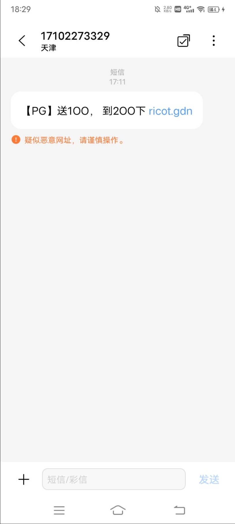 短信内容:【PG】送1OO, 到2OO下 ricot.gdn