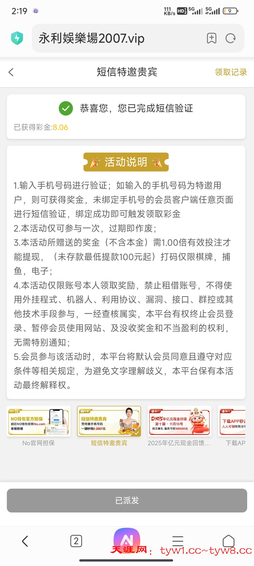 【永利2007】—✅—回馈+手机号码验证