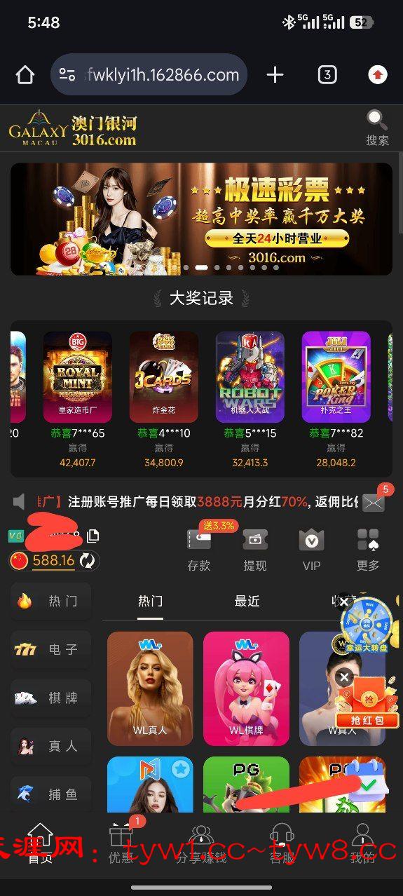 3016 回访彩金588