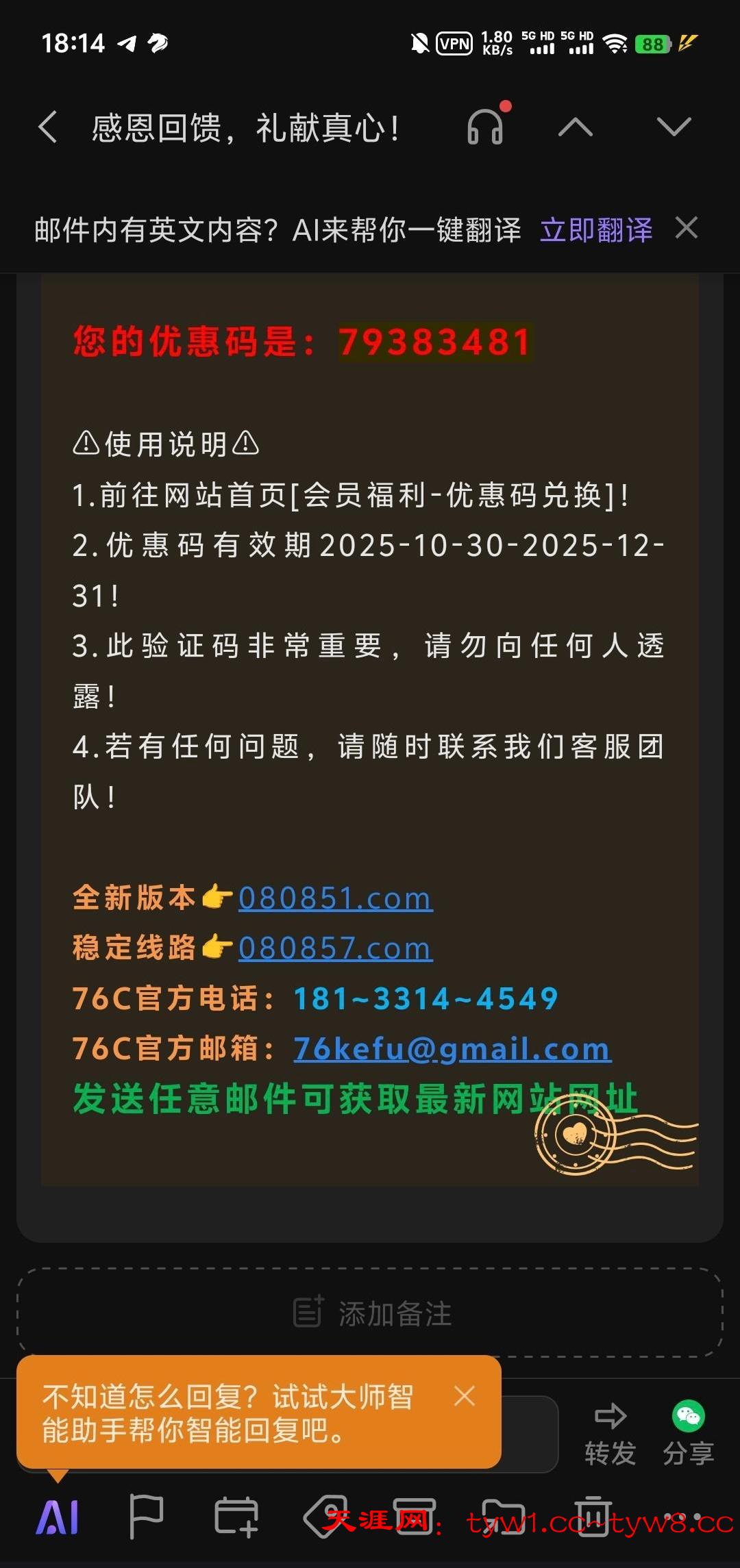 有绑定邮箱的看下 我领了18链接9887.com