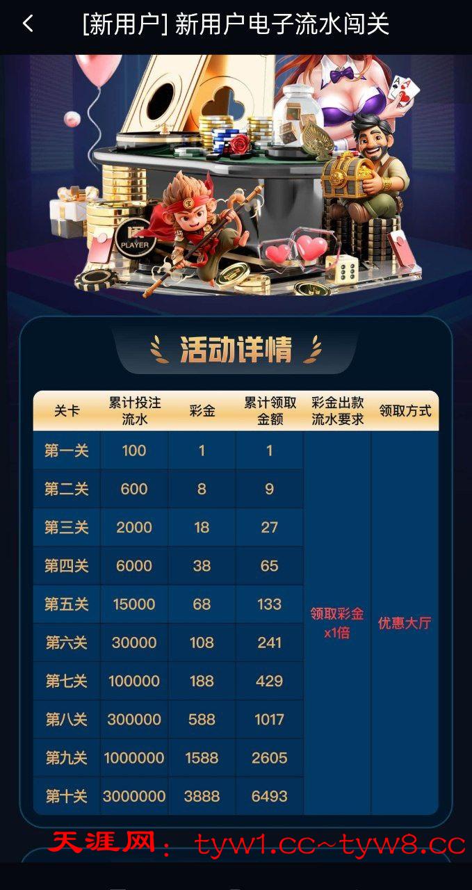✅流水闯关/平台常驻等优惠大厅查看自助申请