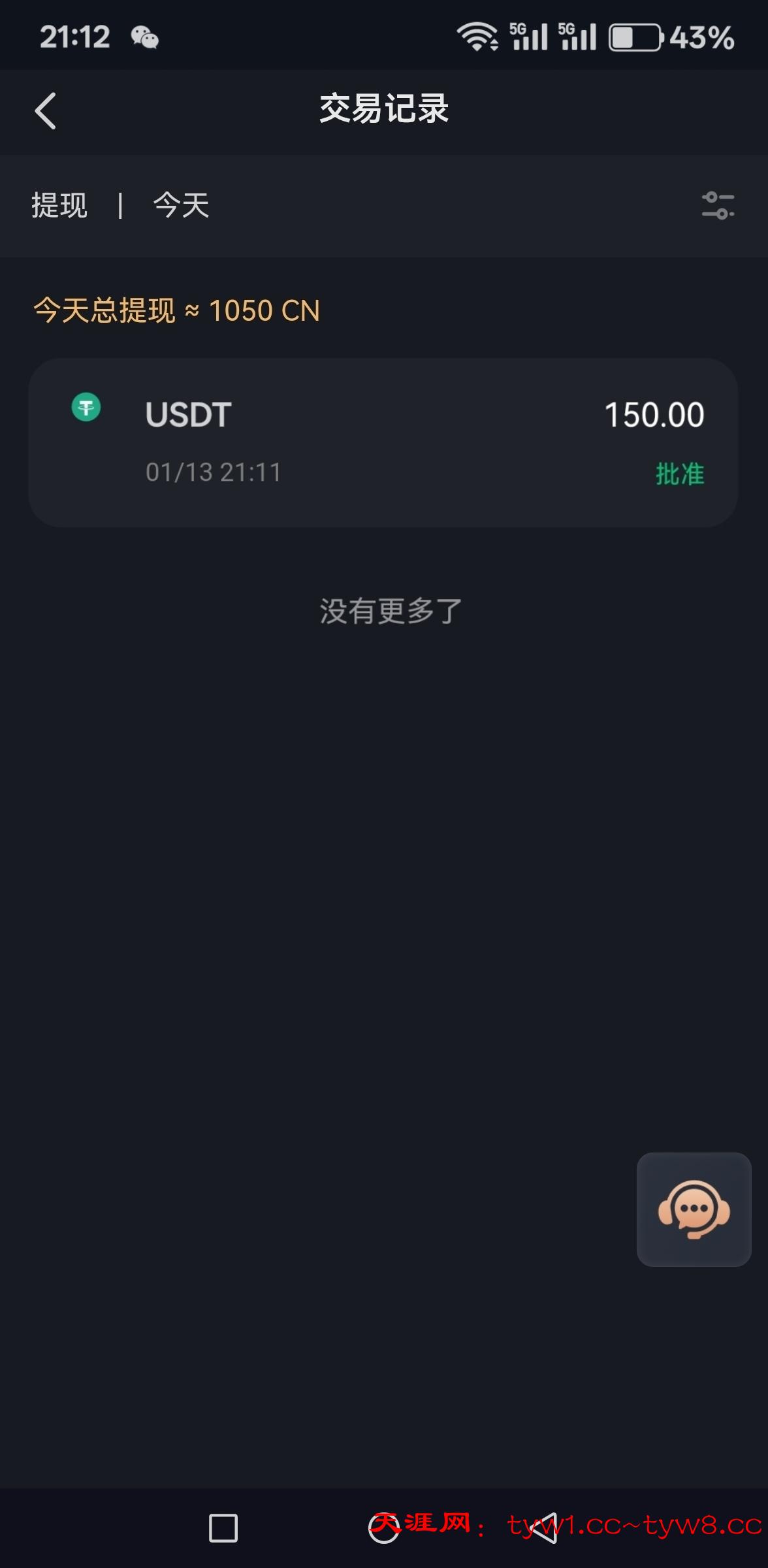 5u下款150u.到账
