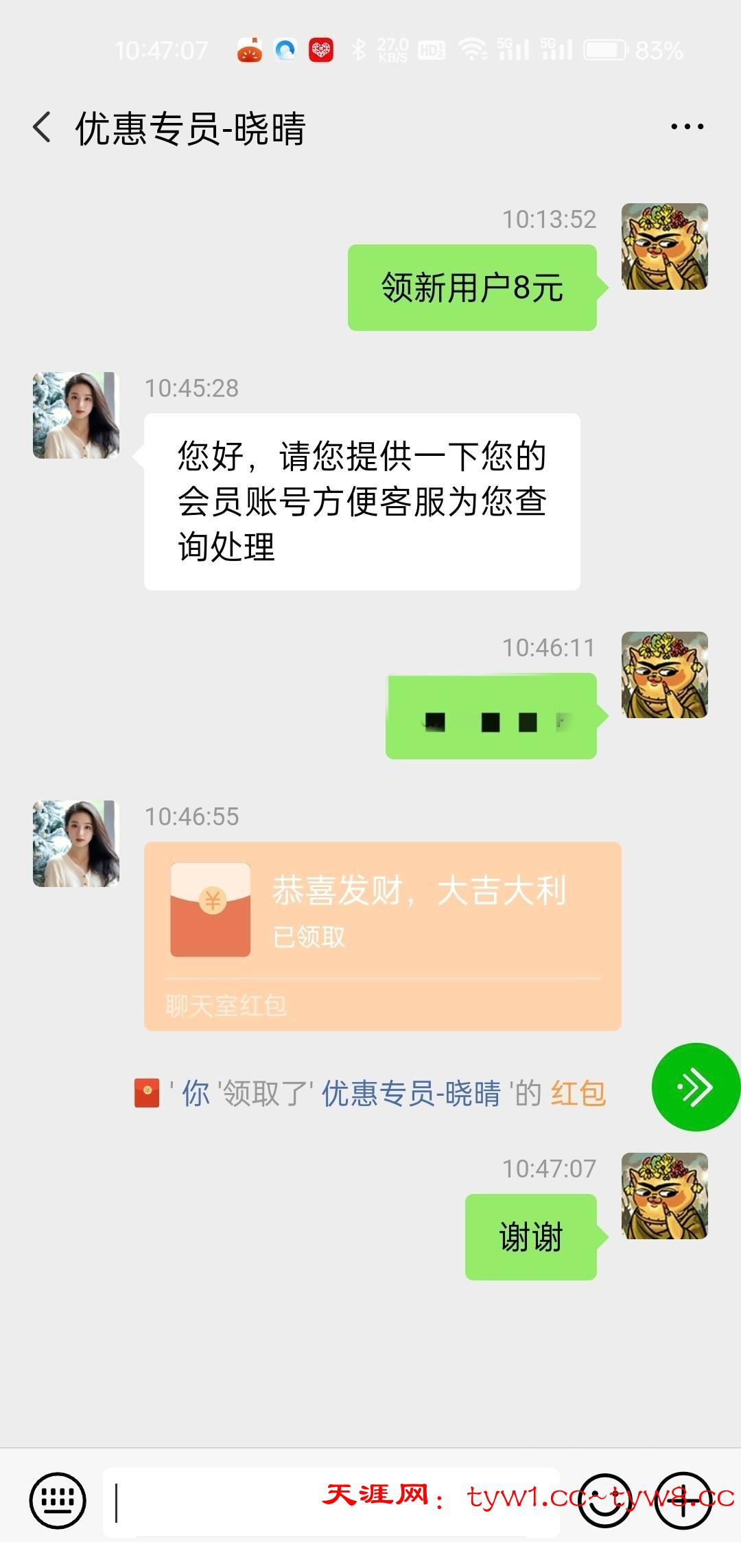 去聊天室找优惠专员领新用户红包8元