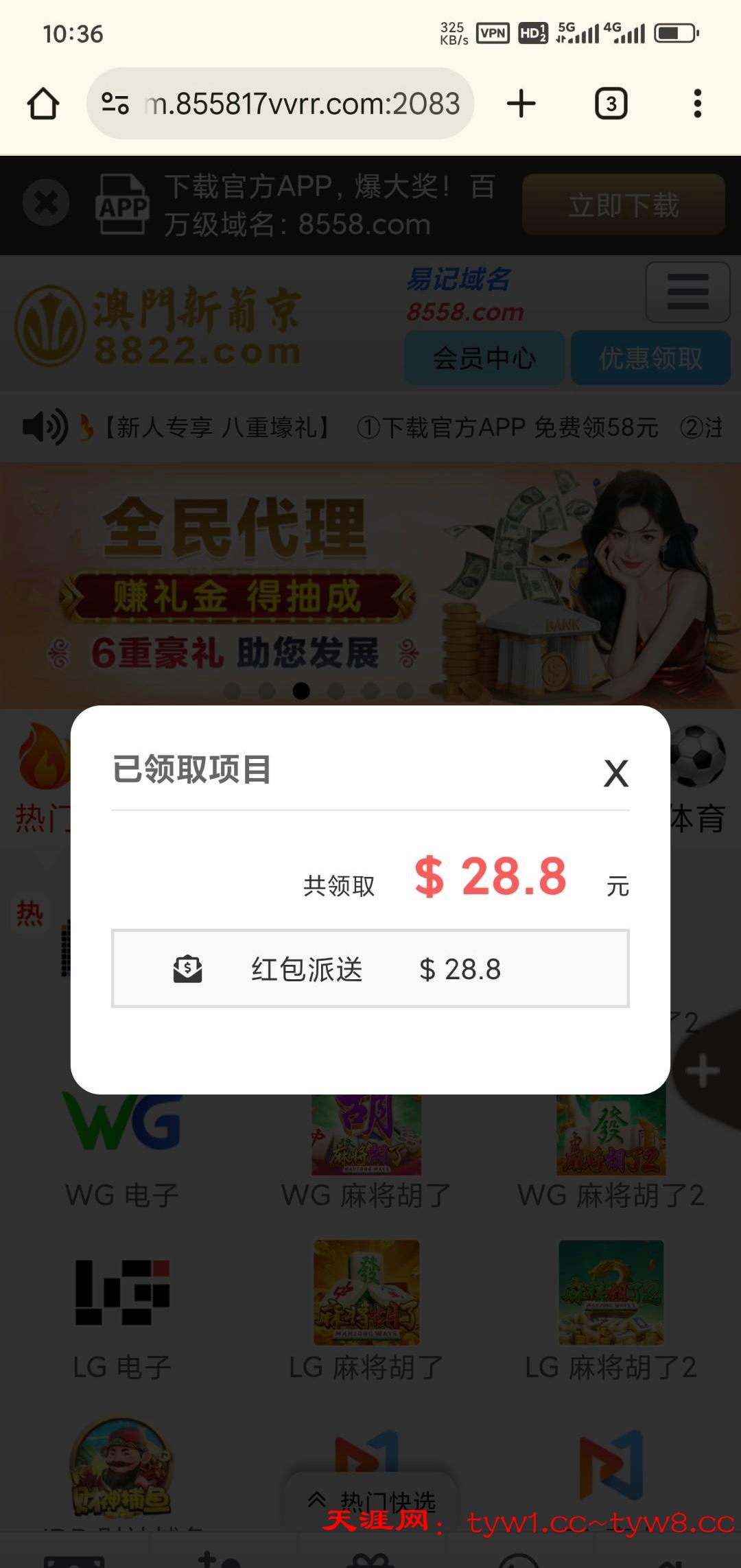 8558和8822虽然说合并了,但是优惠好像不一样,昨天有老哥发8822我上去也有六块多,今天用8558.com 网址登录显示这个神秘彩金,感觉彩金是分开的。
