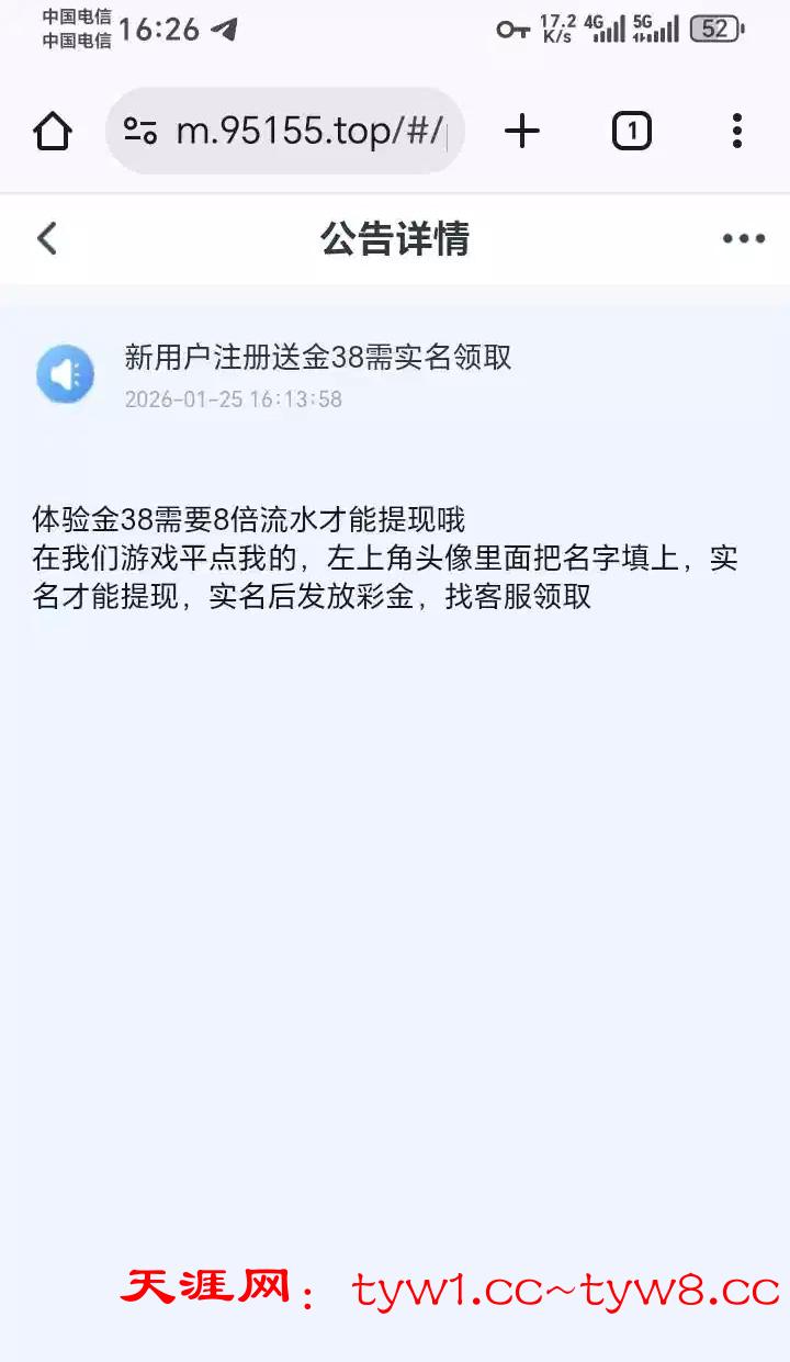 飞机里面看见的 注册按照要求实名了几分钟到账不到账联系客服送估计客服挤爆了 出款自测 不要充值 我看见别人出款了 我没有打出来