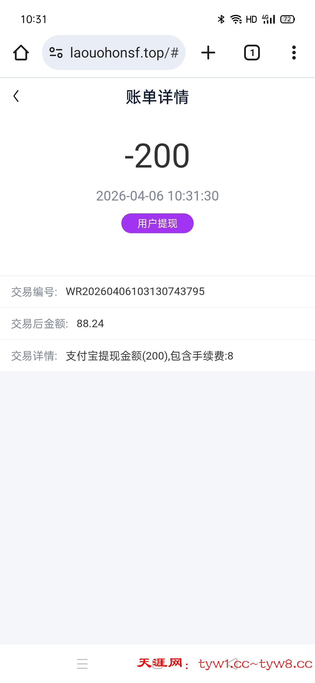 id:107321 提现到账