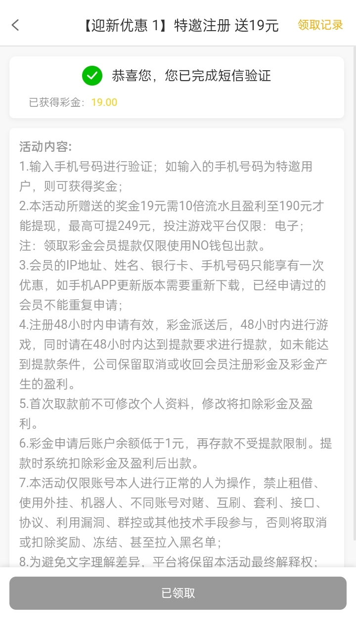 大家都可以去试一试 能接到验证码表示能领到
