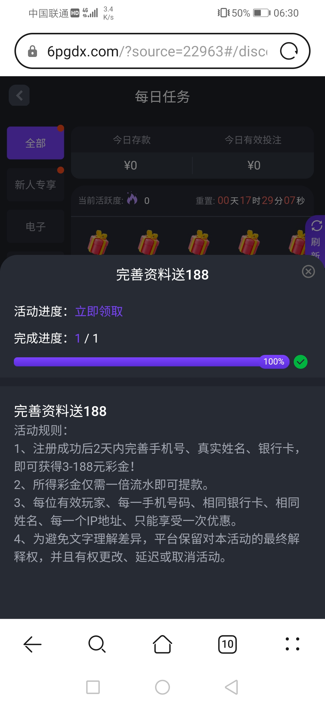 优惠任务里面领取3块 能进游戏 自测