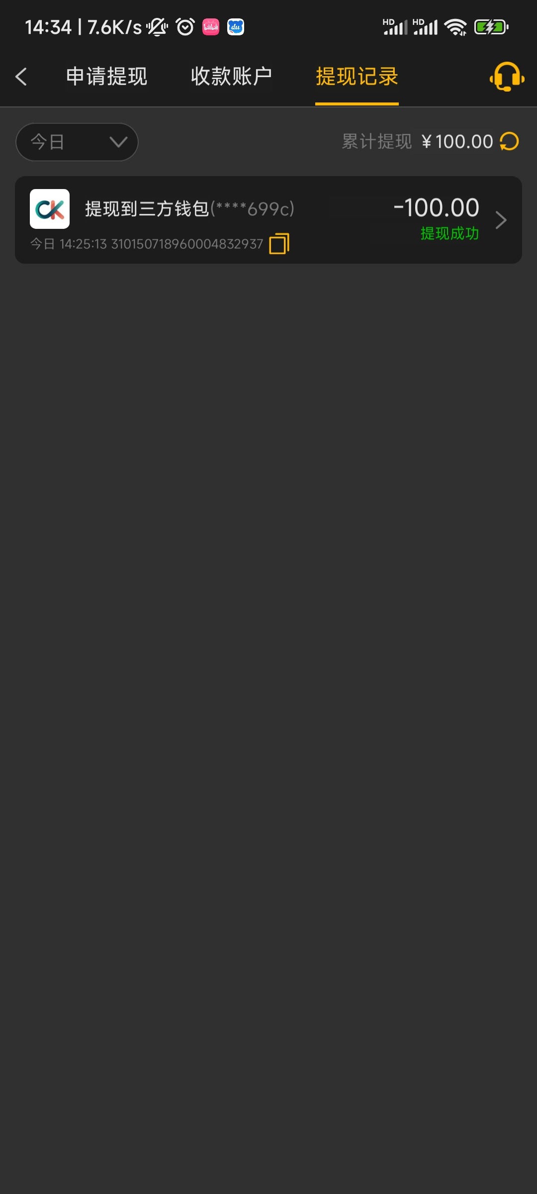 提了100,麻1拉两下直接进胡爆了一百多拉了几下流水够了直接提了