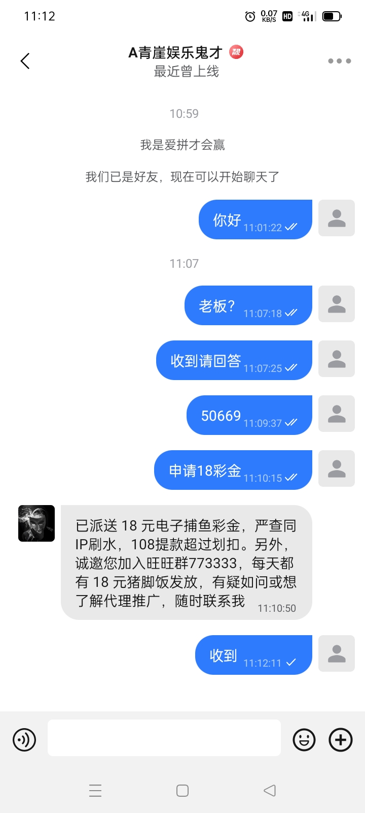 中岀PG🐶庄 我加了,没回我,我靠。。。