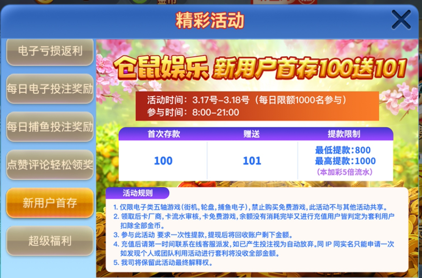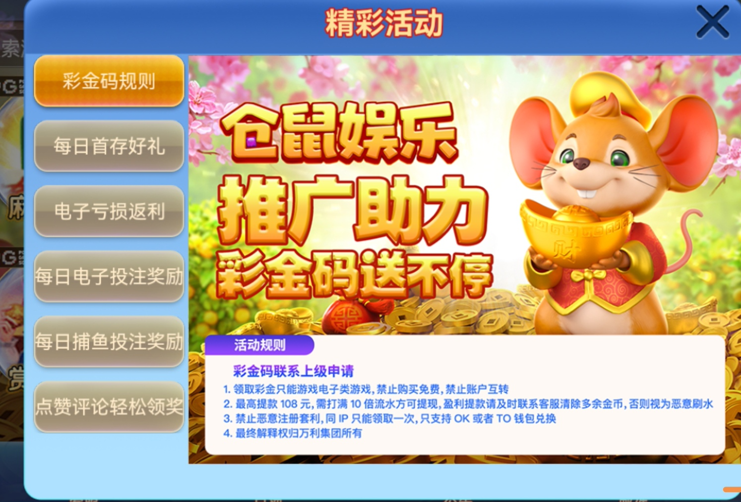 新用户注册送18彩金/10倍流水/108提现只能玩电子 不能买免费