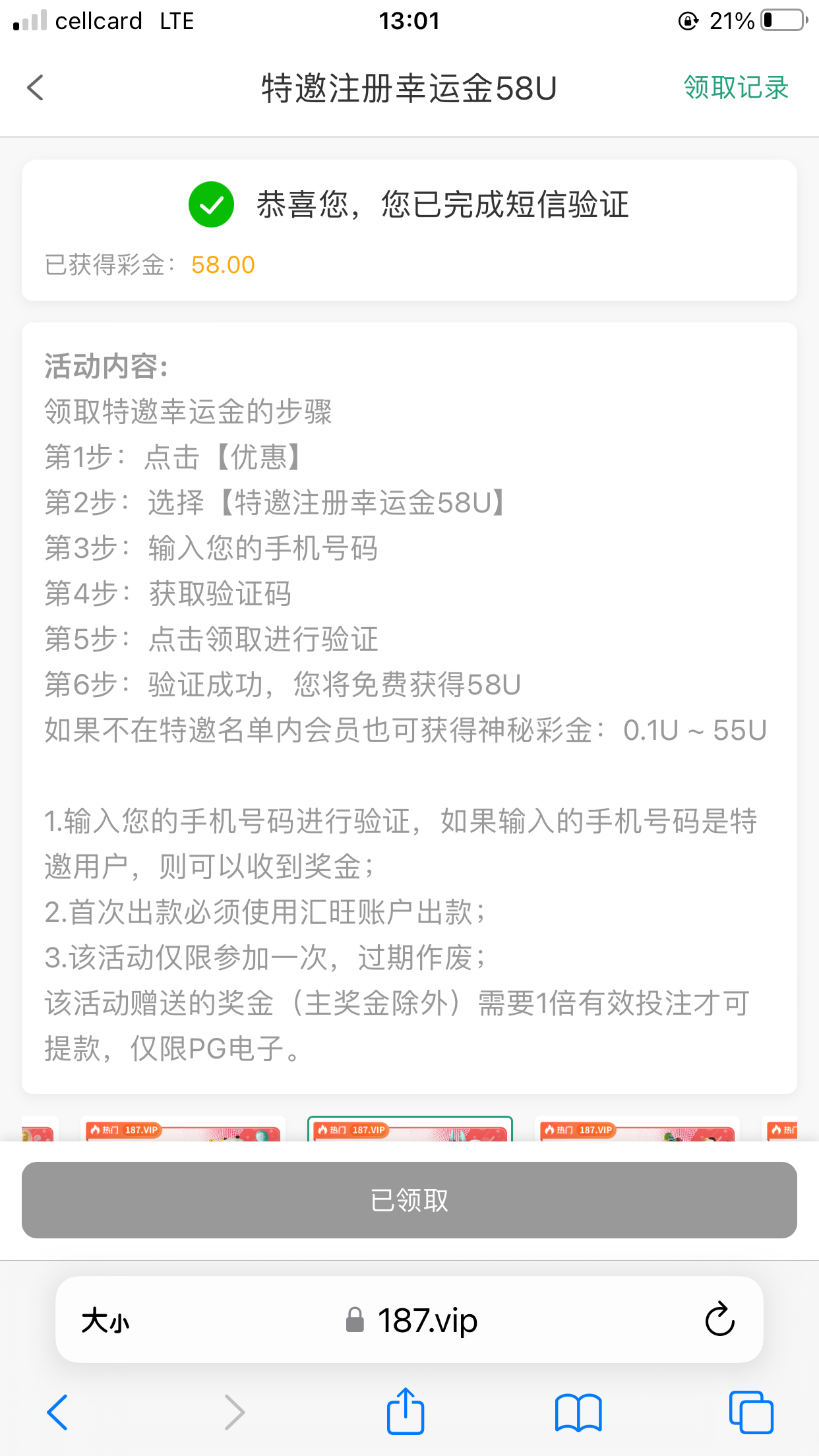 有汇旺和855手机号可以去验证看一下,我没有收到短信,朋友收到告诉我的,然后我验证了一下号码领到58u,得吃500u
