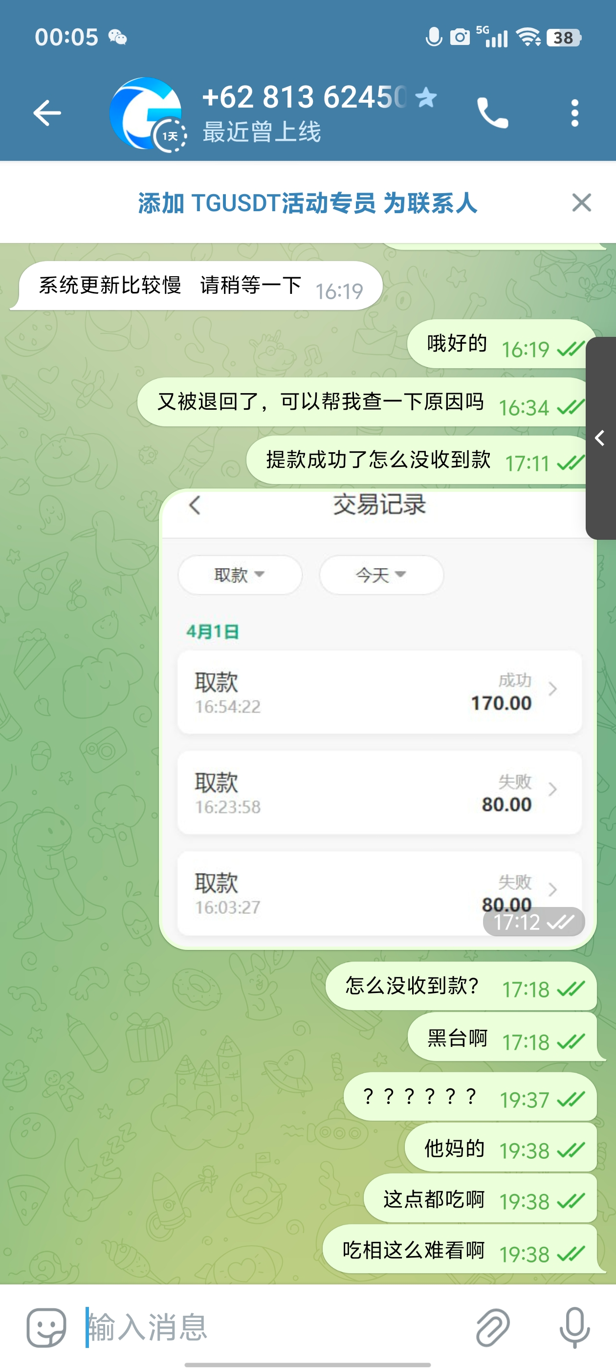 充值20u送20u,打到170u下分空头支票,提款成功但没收到钱,客服装死人