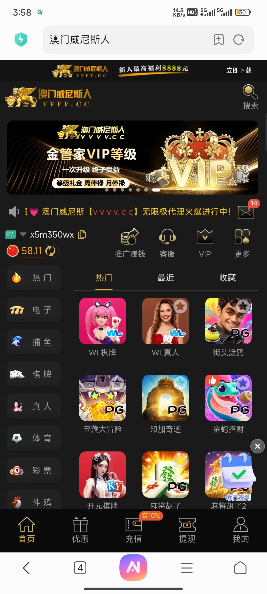 这次也得电话彩金,这次是因为他们要举办那个什么四月份活动才送的,我两个号和领到了 前面两次控制58跟18我都没有充值这次也没有充值 你们去碰瓷试试 找客服电话彩金
