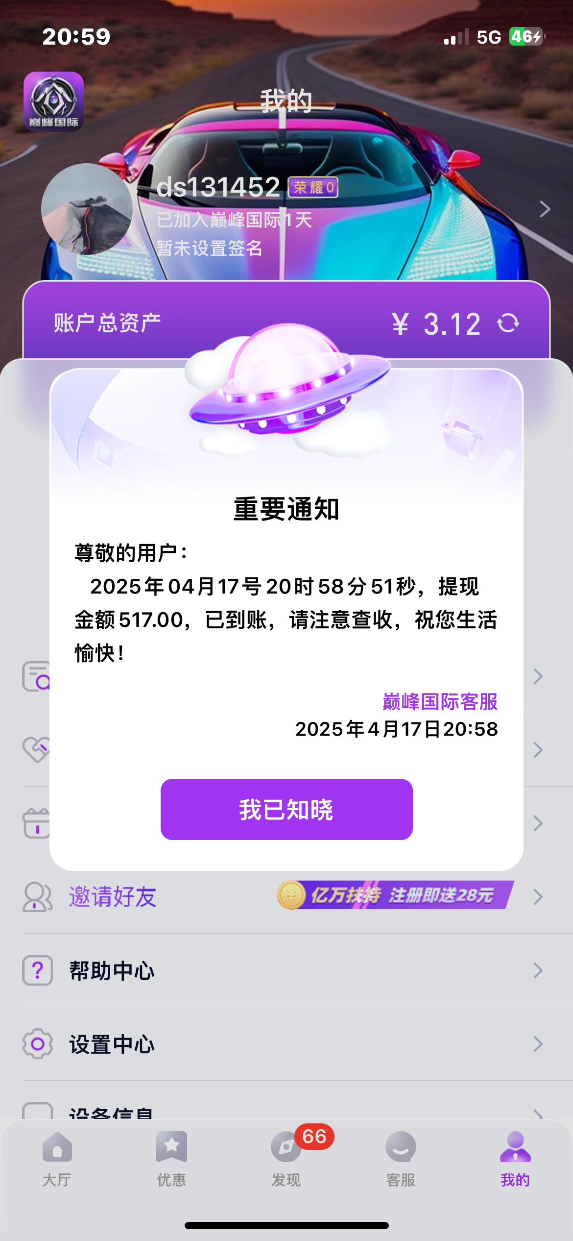 a19891102 a891102中奖了,说没这个下级。系统有问题吧,从论坛进去注册下载的