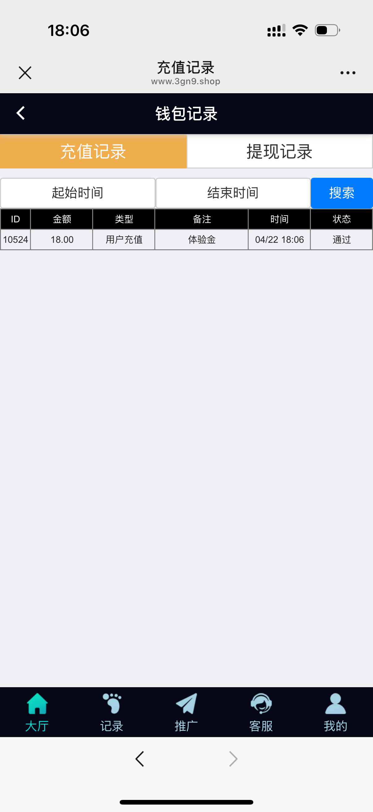 新用户点击充值,选择体验金通道,输入18,系统会自动到账,达标金额下分联系客服