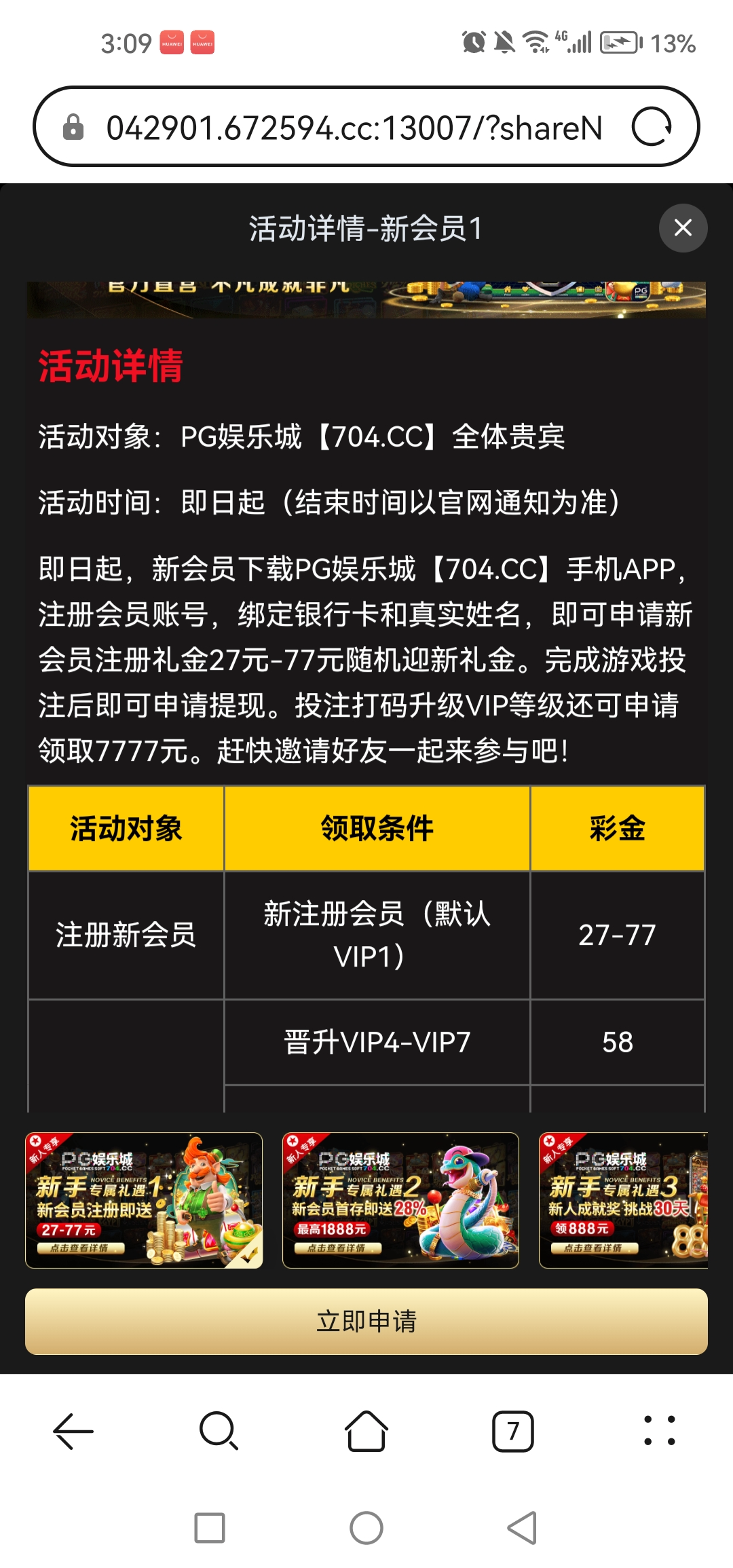 注册绑卡在活动里申请。签到还有6块,有几张卡申请几次。继续注册绑卡申请。只能玩pg电子。没水。打出来的申请一个
