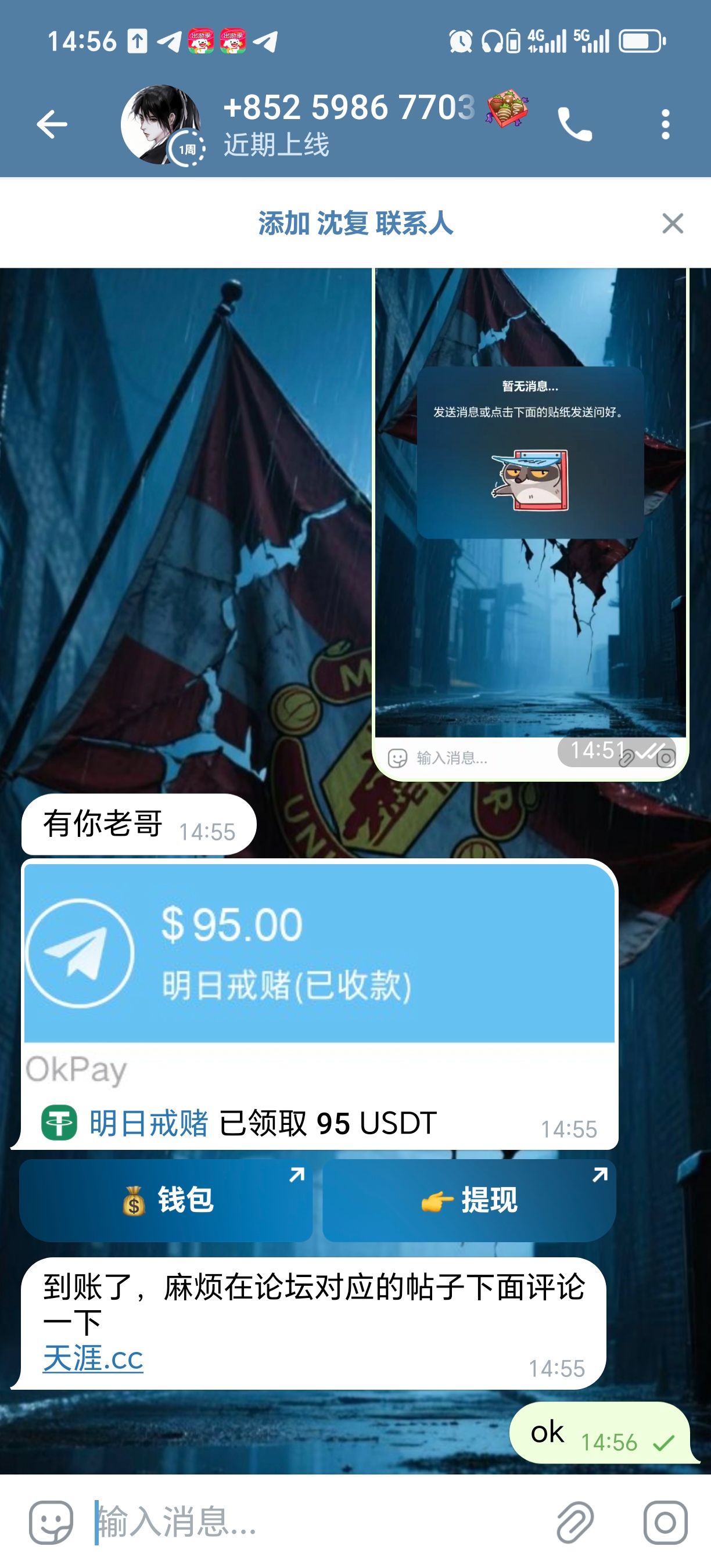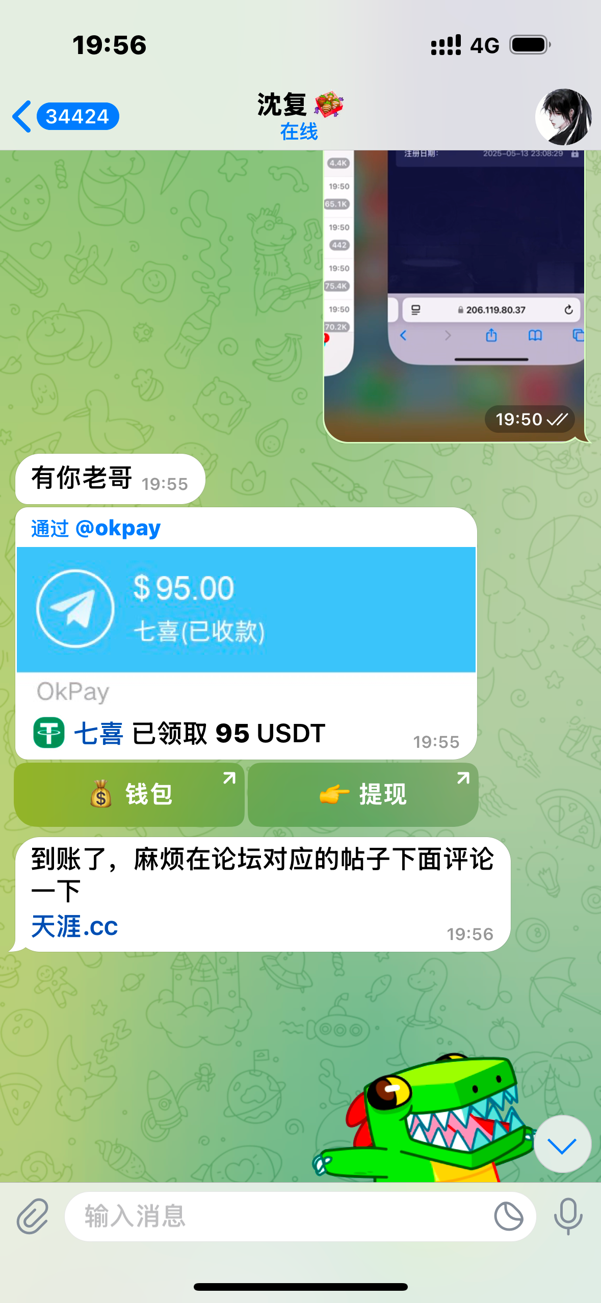 感谢天涯 打了四个返现全部到账天涯