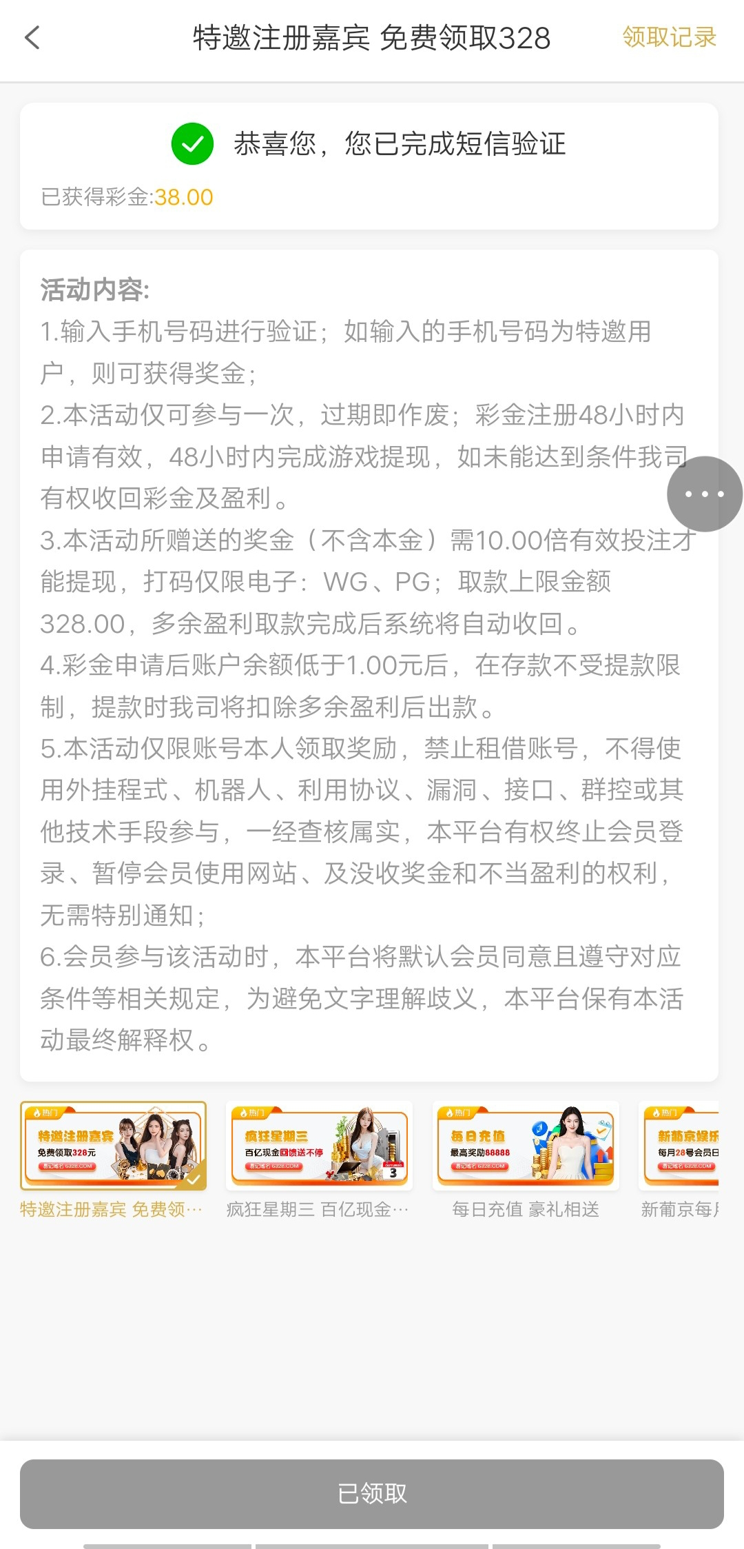 【PG6328】—✅—特邀自助彩金