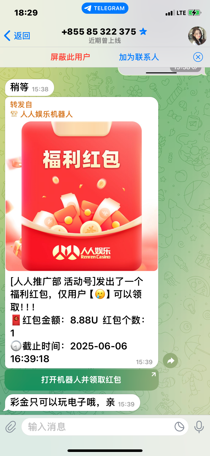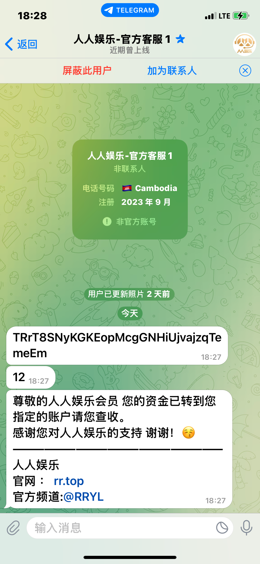 我是客服直接给我飞机私发的消息,大家可以去试试,最低10u起提。飞机客服 @RRYL880