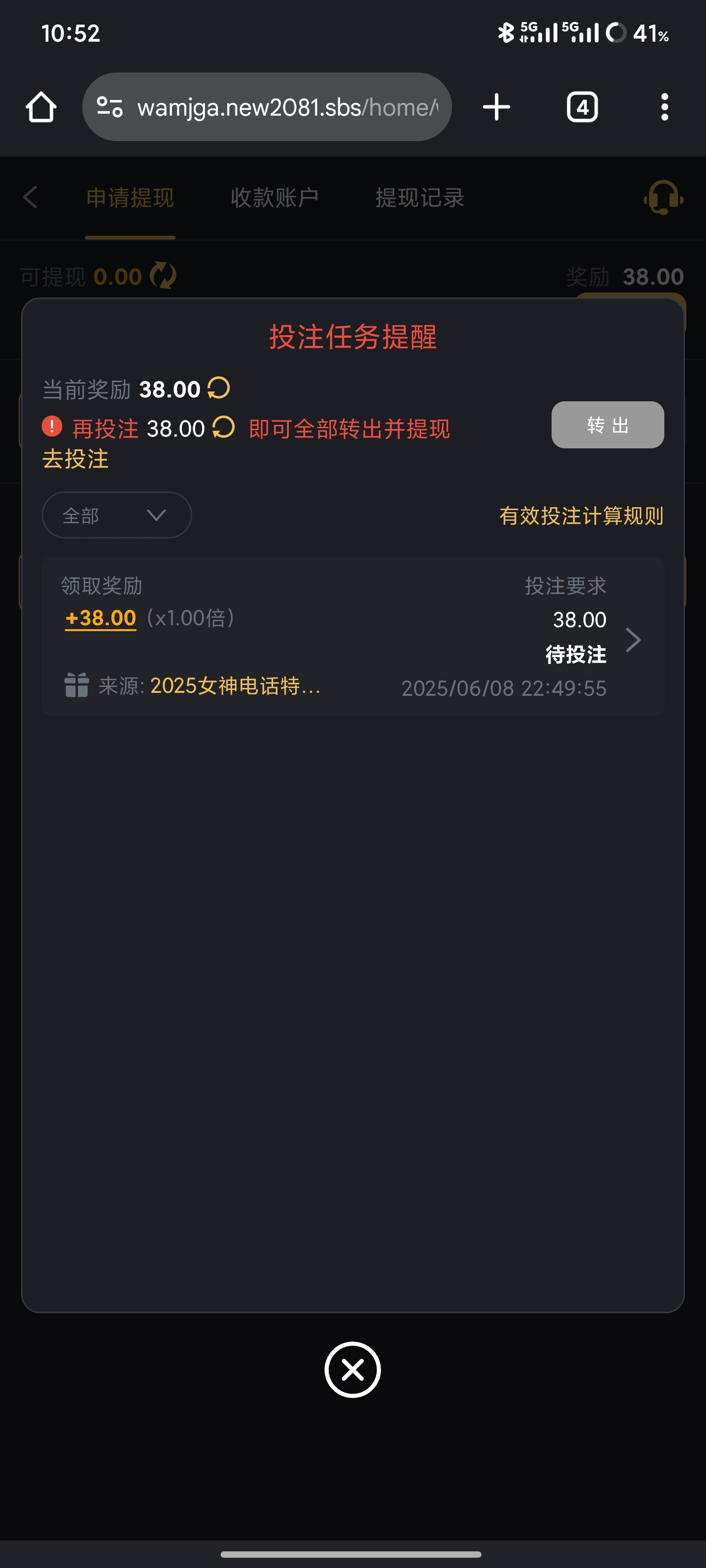 你个死妈仔 领取了还要投注38流水才能激活