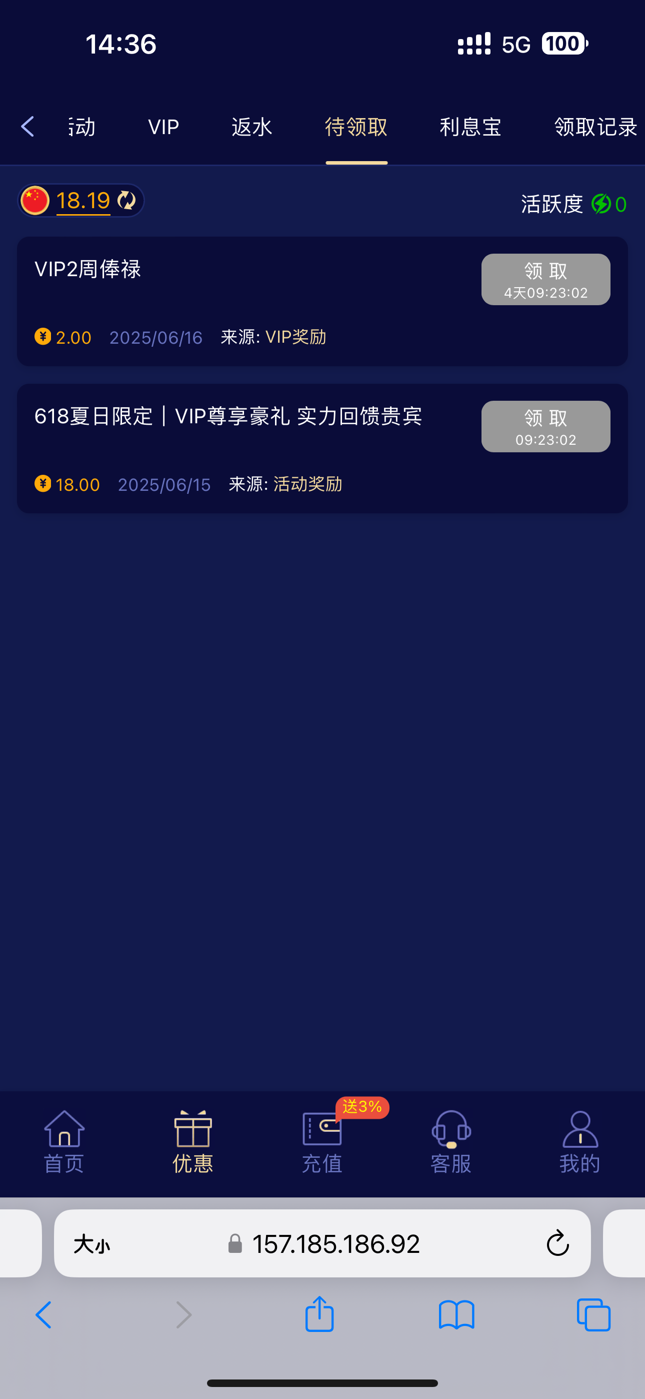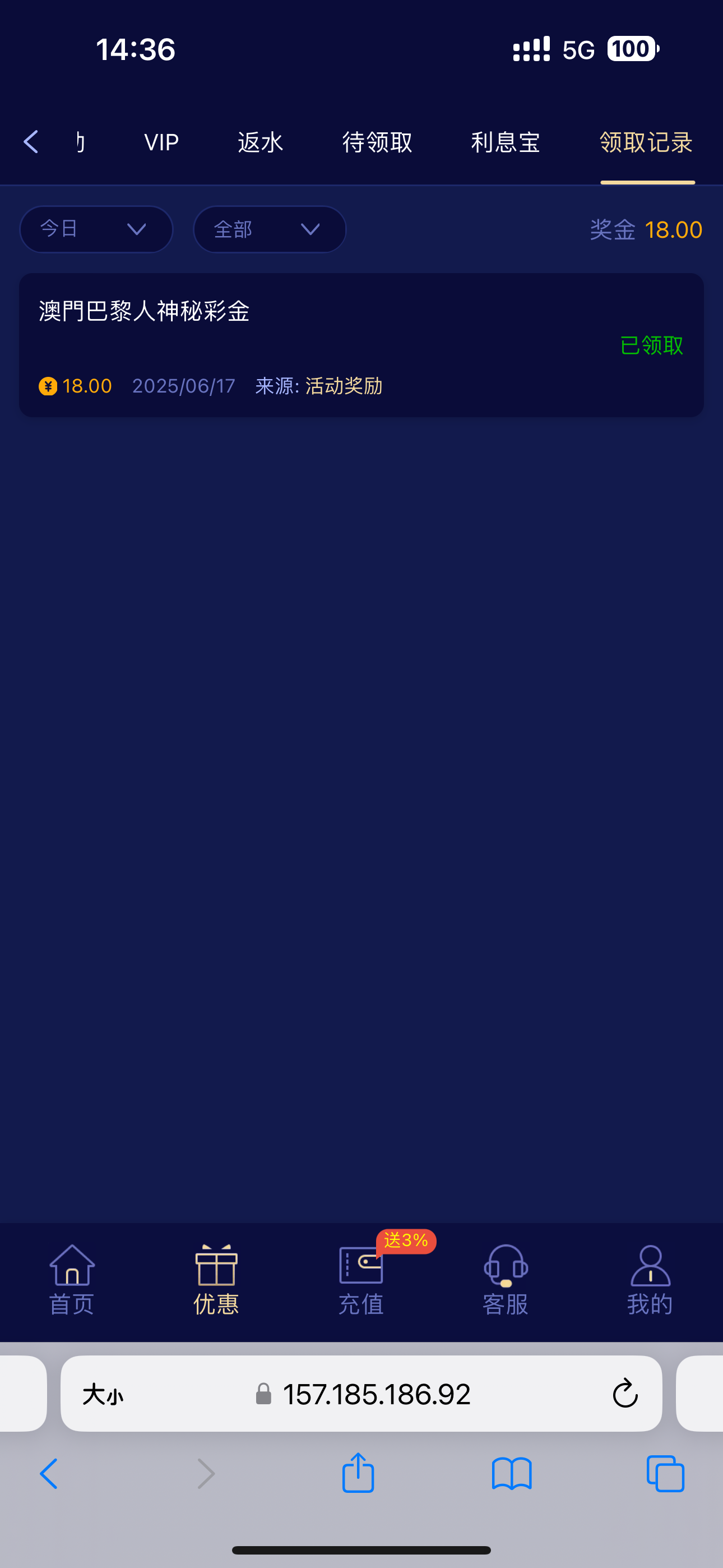 以前充值过有号的可以去看看我领了18我没打出来明天还有18