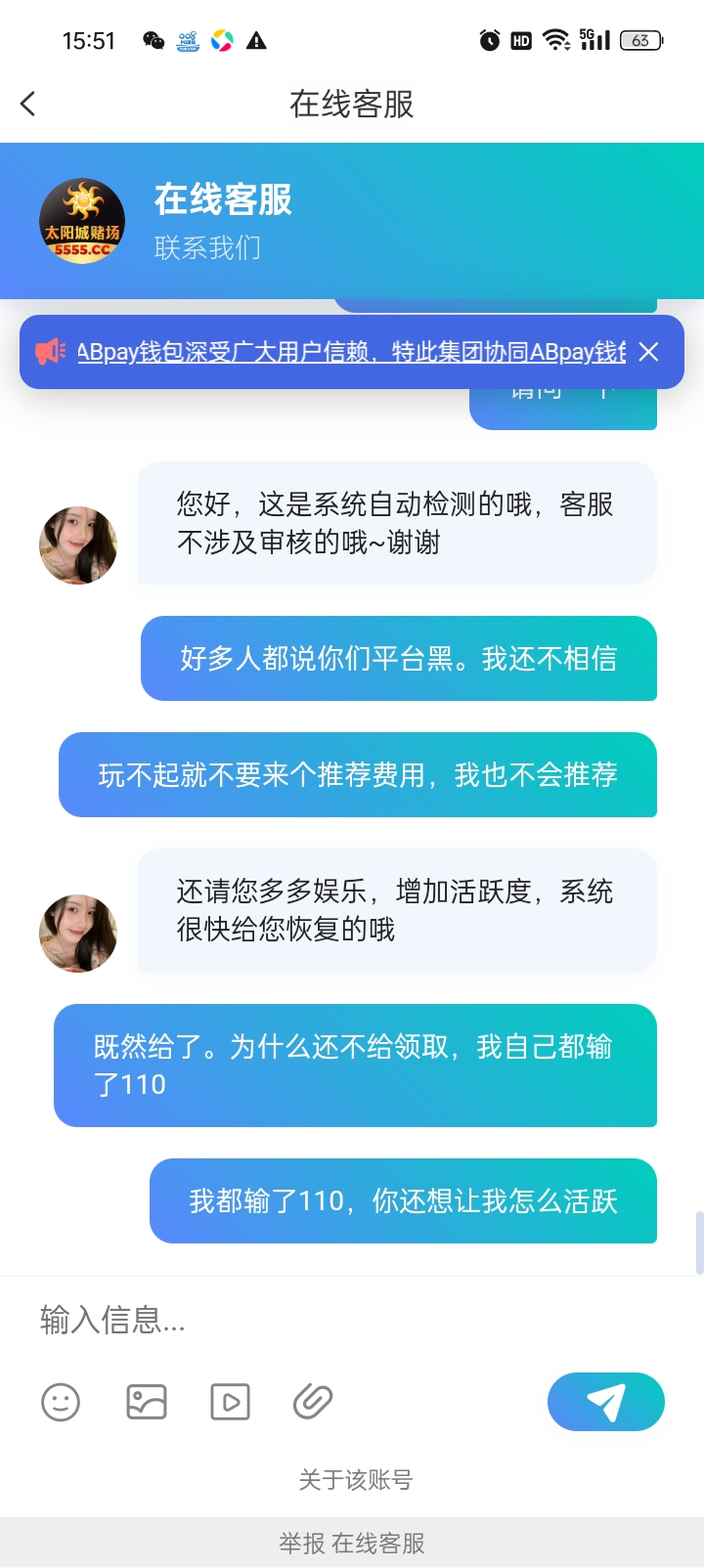 他妈的下级输了2000多,我自己输了110不给人头费,他妈的,,建议大家不要玩这个黑平台,狗庄玩不起,既然给不了还他妈的有推荐费,操他妈的