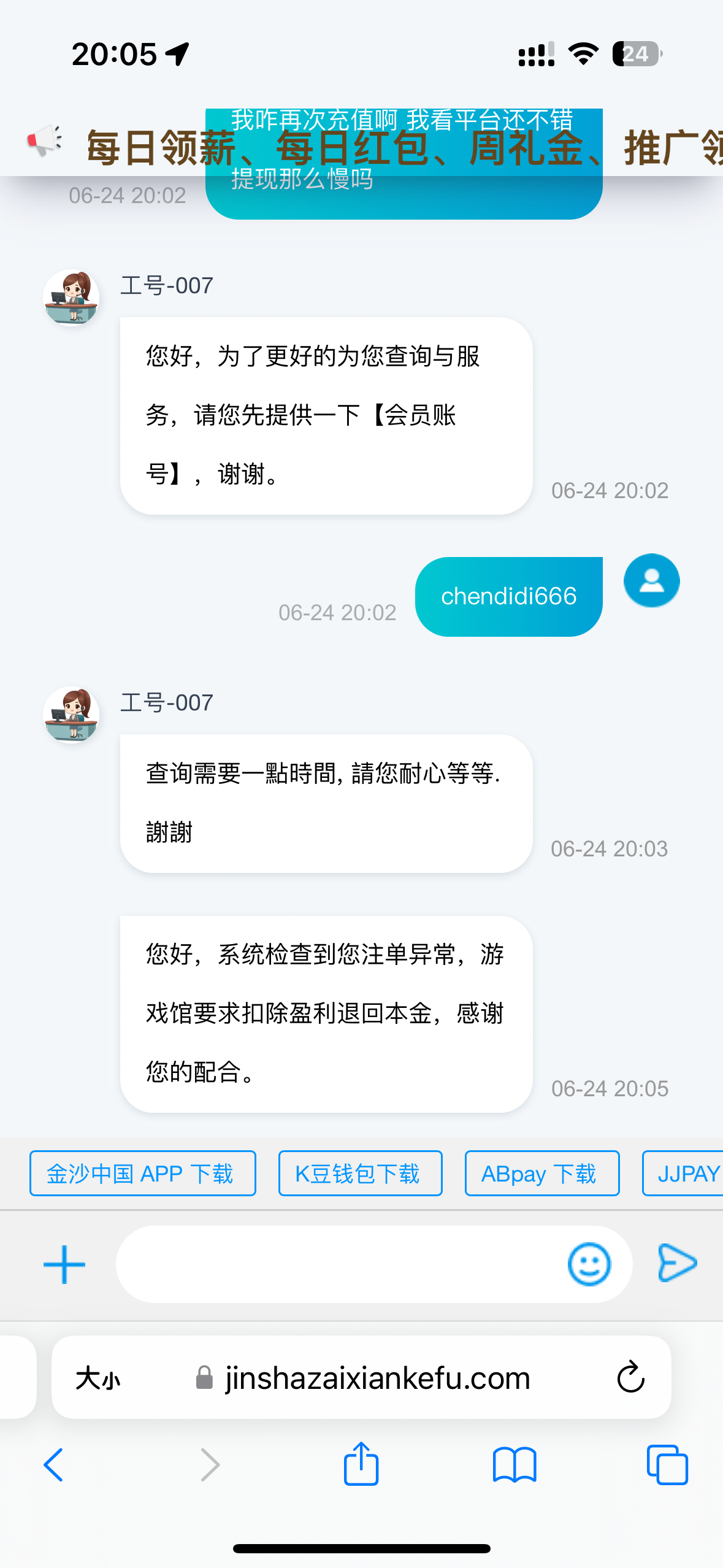 这傻逼台今天也给我打电话了,说好的100+100,3倍流水,充值好了问客服说要8倍,问她怎么回事,马上挂电话,个死妈东西,好在刚刚反水2块打上100给提了,没亏